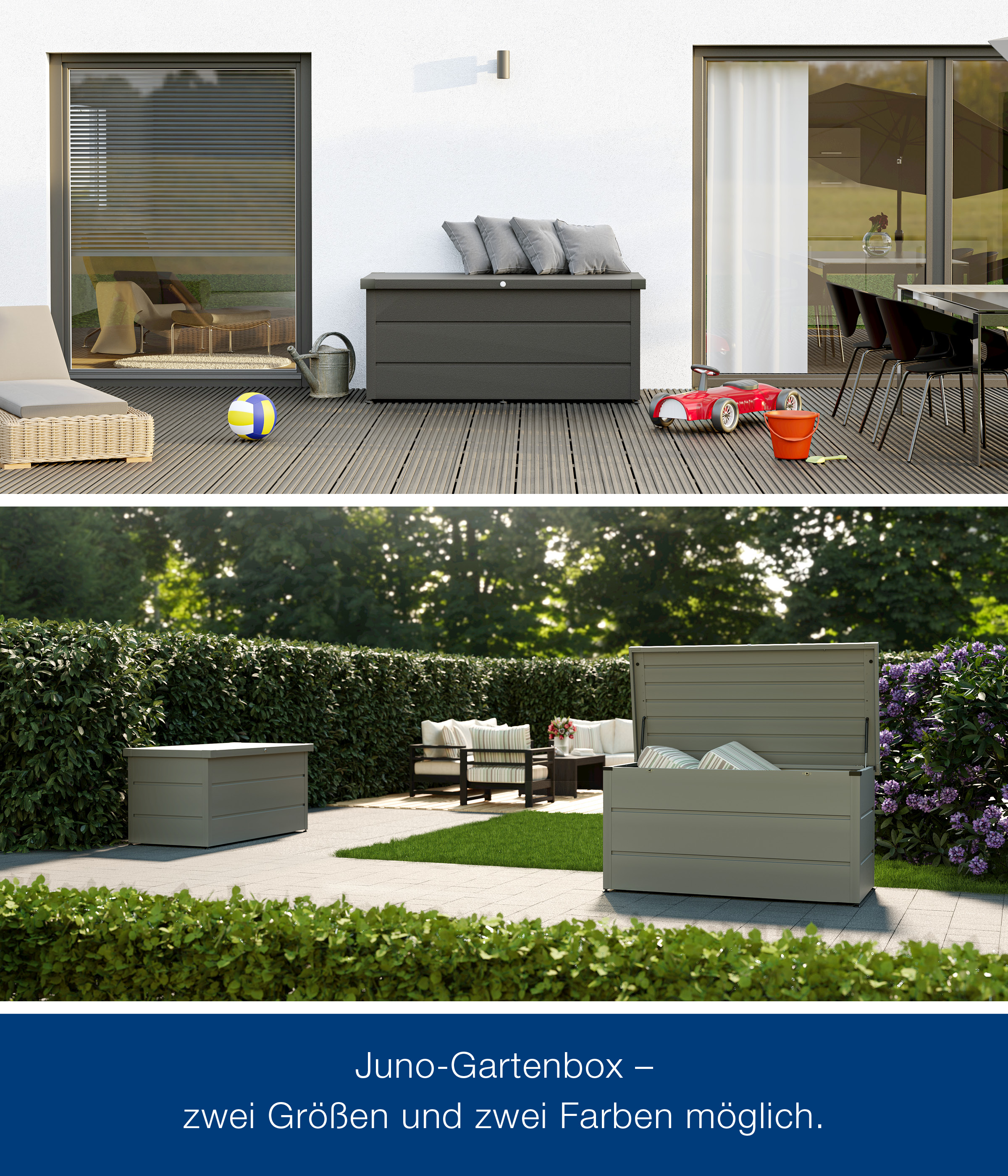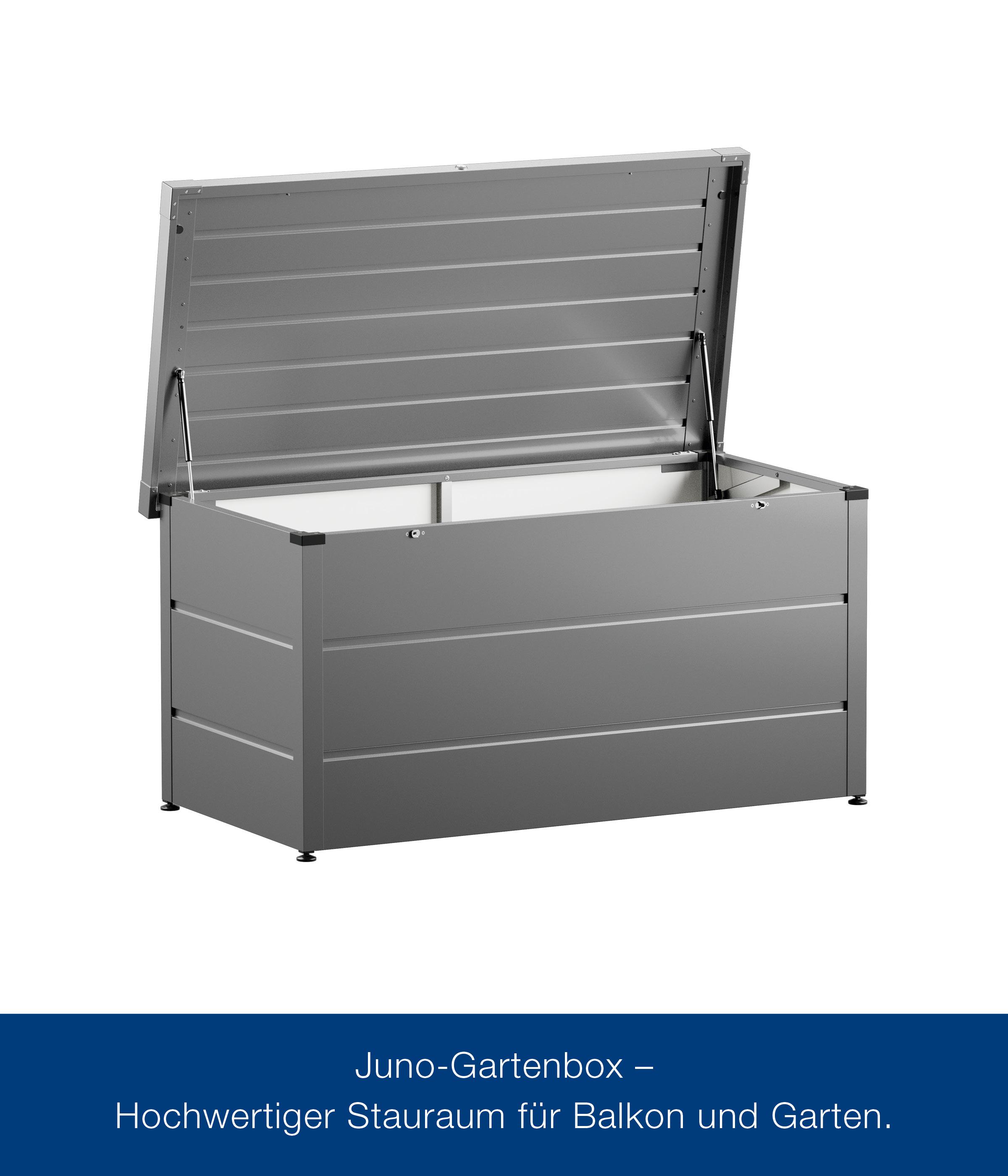 Sie benötigen Stauraum auf Ihrem Balkon oder in Ihrem Garten? Wenn Sie nach einer praktischen Stauraumlösung für z. B. Kissen, Spielsachen sowie Garten- und Terrassenutensilien suchen, dann sind unsere Gartenboxen aus Metall genau das Richtige für Sie.