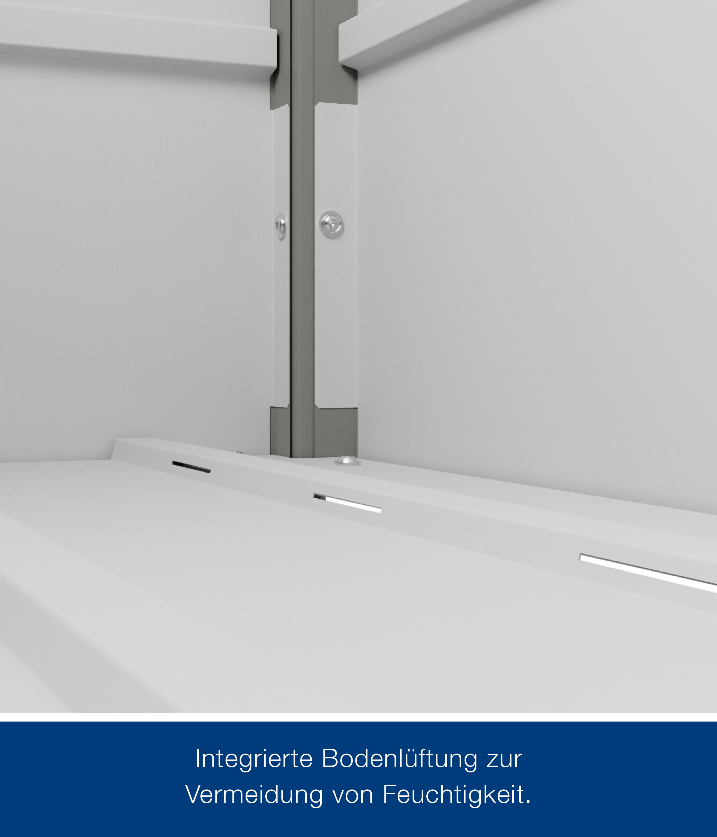 Die robuste Konstruktion aus verzinktem und hochwertig lackiertem Stahlblech ist witterungsbeständig, regenwasserdicht und resistent gegen Sonneneinstrahlung. So schützen Sie Ihre Utensilien sicher vor äußeren Witterungseinflüssen und schaffen gleichzeitig eine optische Aufwertung und einen aufgeräumten Eindruck in Ihrem Garten oder auf dem Balkon.