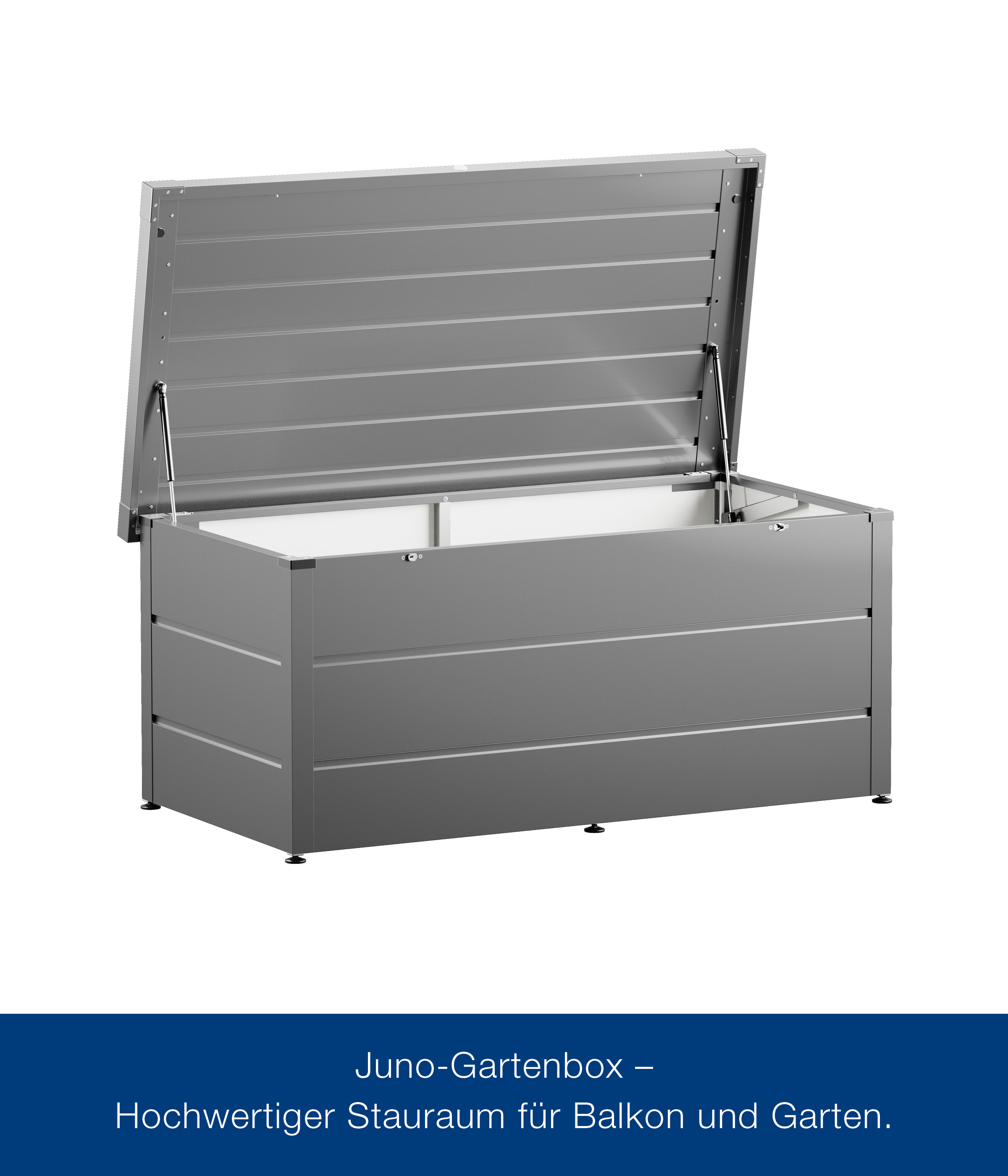 Sie benötigen Stauraum auf Ihrem Balkon oder in Ihrem Garten? Wenn Sie nach einer praktischen Stauraumlösung für z. B. Kissen, Spielsachen sowie Garten- und Terrassenutensilien suchen, dann sind unsere Gartenboxen aus Metall genau das Richtige für Sie.