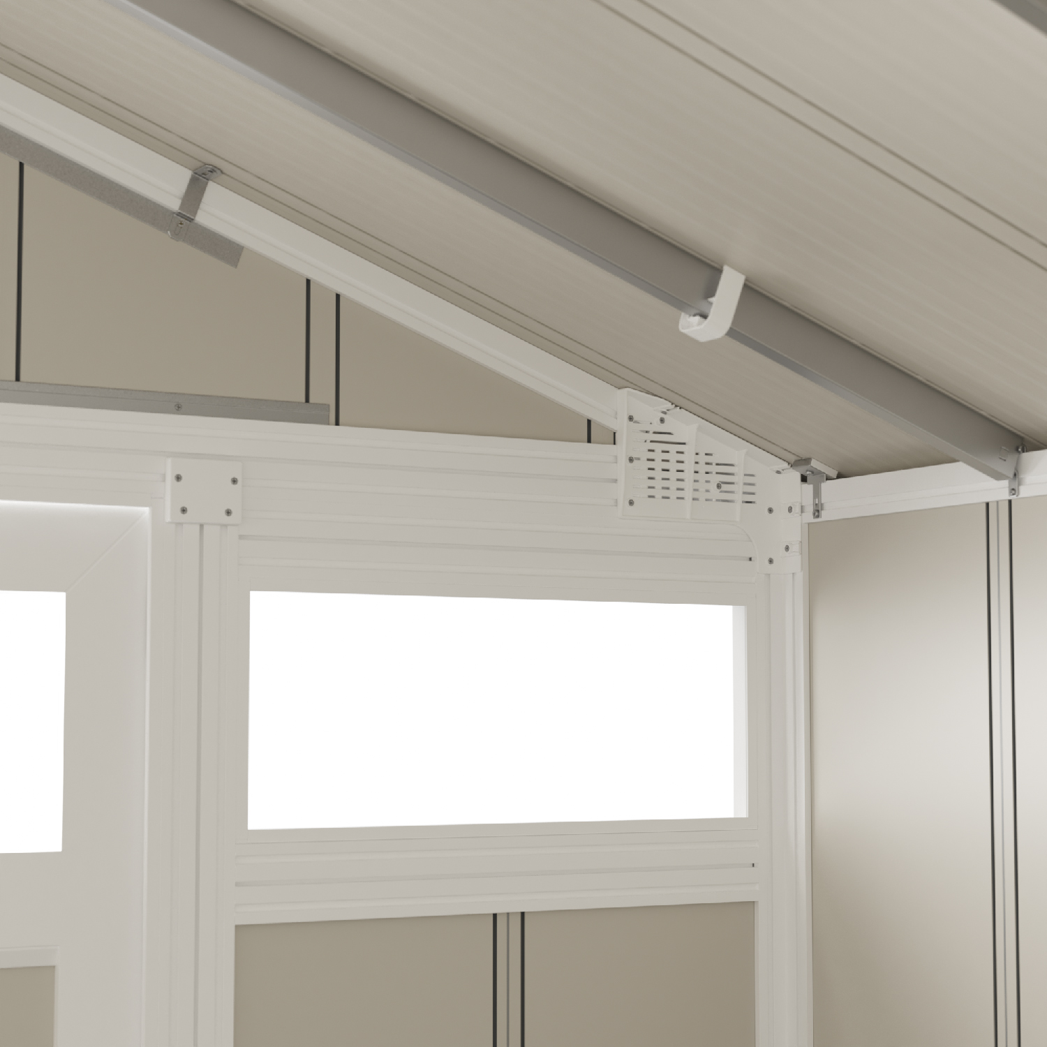 Das Grosfillex Garten- und Gerätehaus aus PVC ist praktisch und erleichtert die Pflege. Im Gegensatz zu Häusern aus Holz benötigen diese weder eine Lasur noch einen Anstrich, denn eine gewöhnliche Reinigung mit Wasser oder biologisch abbaubarer Seife reicht vollkommen aus. Alle Garden Home-Häuser sind zu 99% recyclebar und somit umweltfreundlich. Die Wandung der Grosfillex Garten- und Gerätehäuser besteht aus 26 mm starken PVC-Paneelen. Das gleiche Material wird im Fensterbau verwendet. Das tragende Gerüst besteht aus stabilen, verzinkten Stahlprofilen. Alle Häuser werden komplett gegen UV-Strahlung behandelt. Dadurch verblassen Grosfillex Gartenhäuser nicht. Auf diese Weise besitzt jedes Haus einen Anti-UV-Schutz und eine lange Lebensdauer aufgrund einer hohen Farb- und Materialbeständigkeit. Für Schäden durch unzureichend befestigte Gartenhäuser kann keine Haftung übernommen werden.