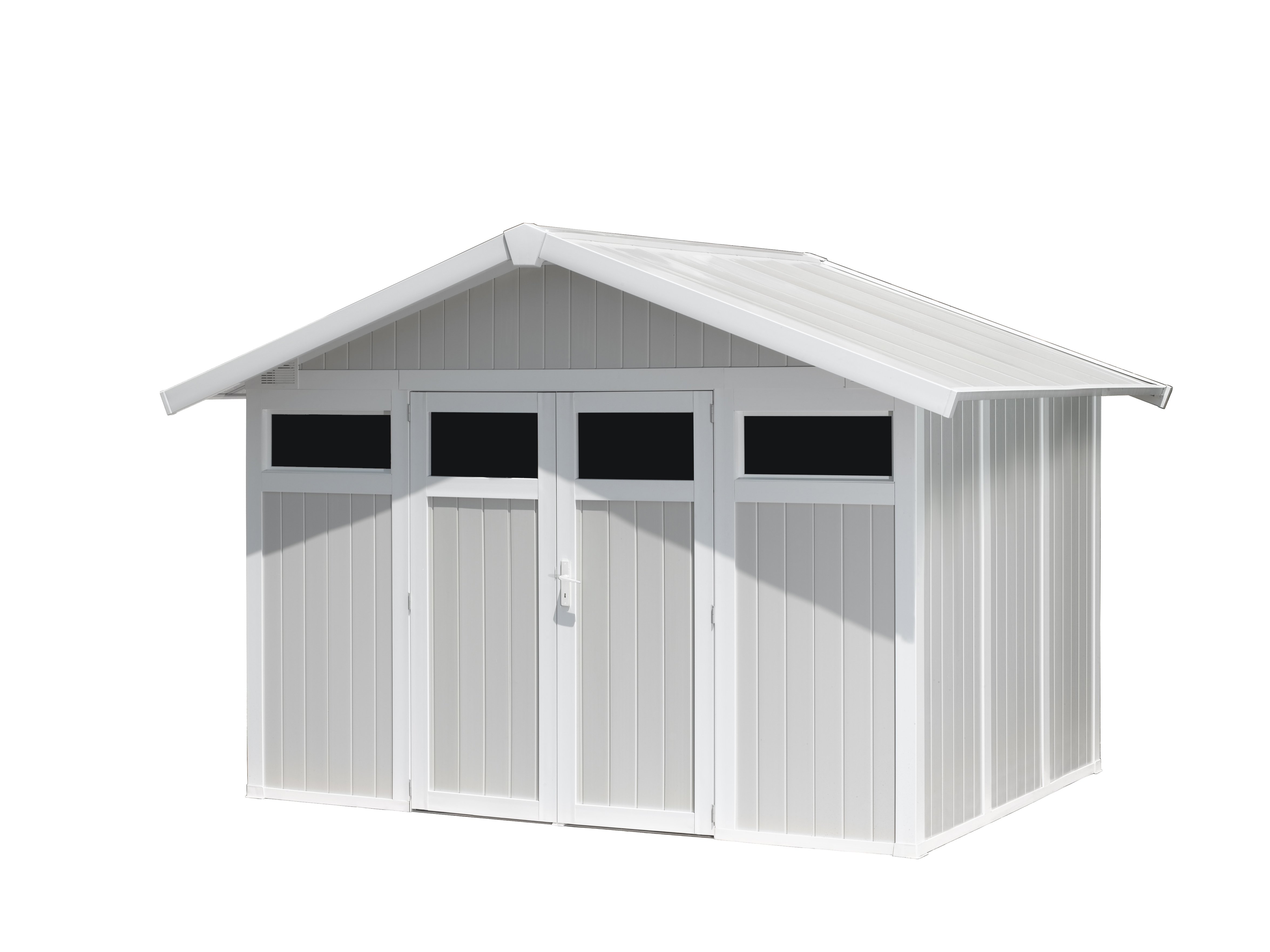 Das Grosfillex Garten- und Gerätehaus aus PVC ist praktisch und erleichtert die Pflege. Im Gegensatz zu Häusern aus Holz benötigen diese weder eine Lasur noch einen Anstrich, denn eine gewöhnliche Reinigung mit Wasser oder biologisch abbaubarer Seife reicht vollkommen aus. Alle Garden Home-Häuser sind zu 99% recyclebar und somit umweltfreundlich. Die Wandung der Grosfillex Garten- und Gerätehäuser besteht aus 26 mm starken PVC-Paneelen. Das gleiche Material wird im Fensterbau verwendet. Das tragende Gerüst besteht aus stabilen, verzinkten Stahlprofilen. Alle Häuser werden komplett gegen UV-Strahlung behandelt. Dadurch verblassen Grosfillex Gartenhäuser nicht. Auf diese Weise besitzt jedes Haus einen Anti-UV-Schutz und eine lange Lebensdauer aufgrund einer hohen Farb- und Materialbeständigkeit. Für Schäden durch unzureichend befestigte Gartenhäuser kann keine Haftung übernommen werden.