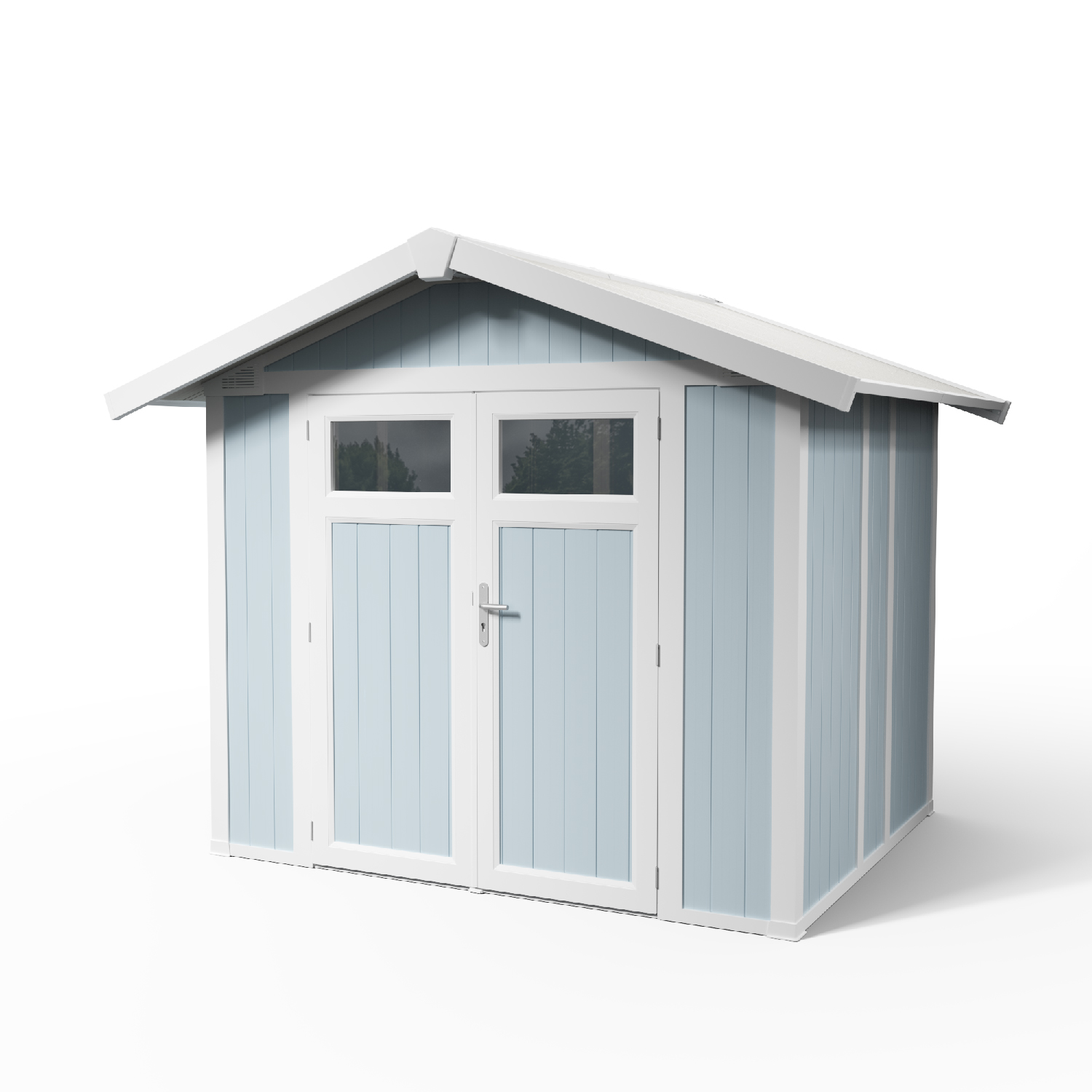 Das Grosfillex Garten- und Gerätehaus aus PVC ist praktisch und erleichtert die Pflege. Im Gegensatz zu Häusern aus Holz benötigen diese weder eine Lasur noch einen Anstrich, denn eine gewöhnliche Reinigung mit Wasser oder biologisch abbaubarer Seife reicht vollkommen aus. Alle Garden Home-Häuser sind zu 99% recyclebar und somit umweltfreundlich. Die Wandung der Grosfillex Garten- und Gerätehäuser besteht aus 26 mm starken PVC-Paneelen. Das gleiche Material wird im Fensterbau verwendet. Das tragende Gerüst besteht aus stabilen, verzinkten Stahlprofilen. Alle Häuser werden komplett gegen UV-Strahlung behandelt. Dadurch verblassen Grosfillex Gartenhäuser nicht. Auf diese Weise besitzt jedes Haus einen Anti-UV-Schutz und eine lange Lebensdauer aufgrund einer hohen Farb- und Materialbeständigkeit. Für Schäden durch unzureichend befestigte Gartenhäuser kann keine Haftung übernommen werden.