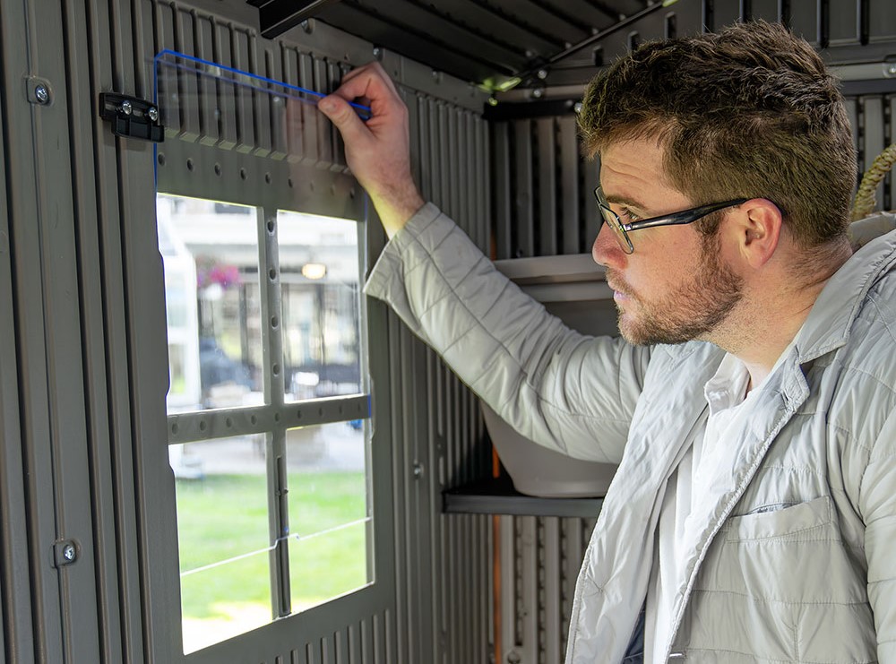 - Dank des pflegeleichten Materials ist das Gerätehaus wartungsarm.