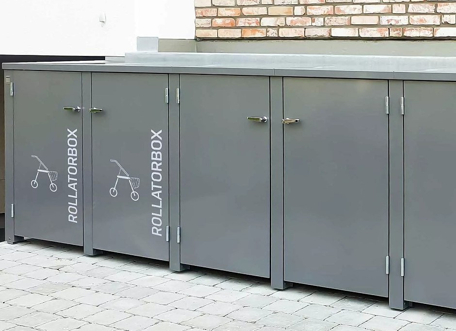 In der Rollatorbox von Siebau ist der Gehwagen wettergeschützt deponiert und zugleich barrierefrei zugänglich. Die Multibox ist für Rollatoren in allen gängigen Größen geeignet.