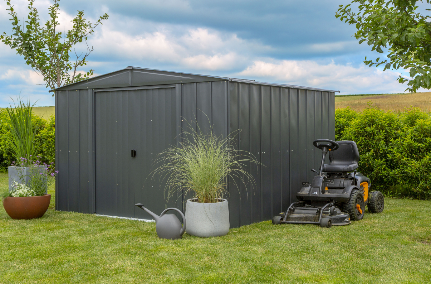 Die hochfeste Rahmenkonstruktion aus Stahl garantiert enorme Stabilität und Langlebigkeit ohne jegliche Wartungsarbeiten. Die Metall-Gerätehäuser sind extrem stabil und haben eine unglaubliche Schneelast von 100 kg/m².