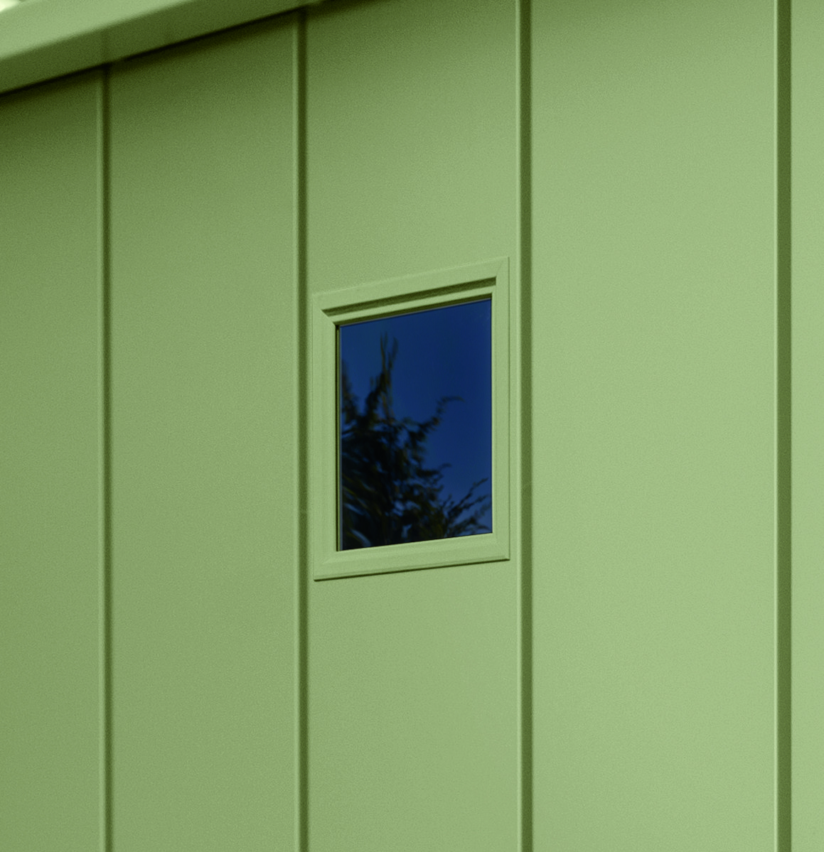 Verglasungselement: 203 × 283 mm. Verglasung Kunststoff-Einfachscheibe 3 mm, klar oder Kristallstruktur. Passend für Hörmann Gerätehäuser Berry.